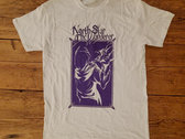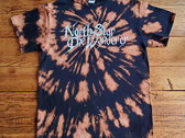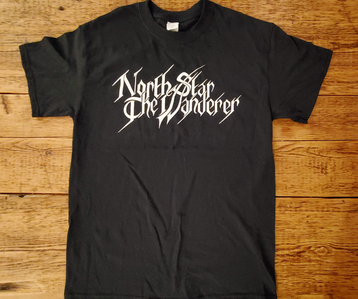 White logo on a black Gildan heavy cotton T-shirt. Looks boss.