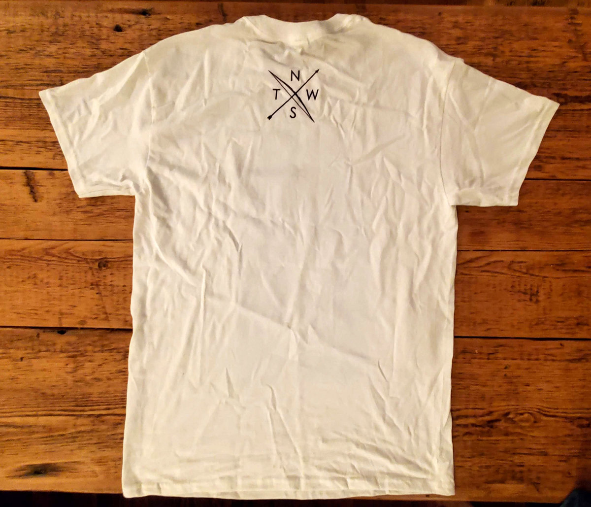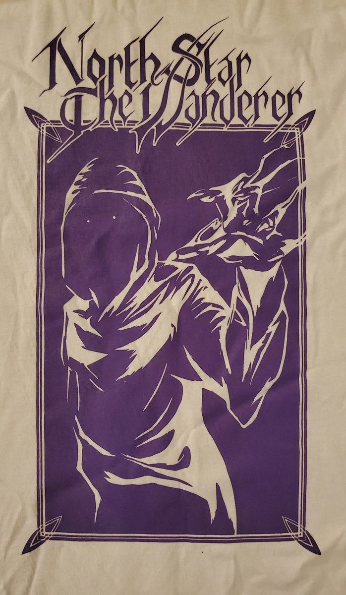 White Gildan heavy cotton T-shirt with a print of a hooded specter reaching out with his smoky hand in vibrant purple. Whether you end up dead when he's done with you, banished to the phantom zone, or just stoned, is a mystery. Features the bow & arrow sigil on the back.